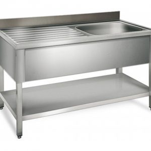 Dodaj na seznamOgledMiza iz nerjavečega jekla dolžine 140cm z desnim umivalnikom in polico (600mm)
