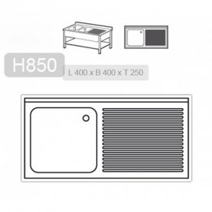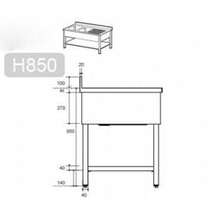 Dodaj na seznamOgledMiza iz nerjavečega jekla dolžine 100 cm z desnim umivalnikom in polico (600mm)