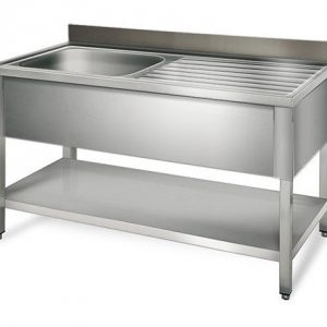 Dodaj na seznamOgledMiza iz nerjavečega jekla dolžine 160 cm z levim umivalnikom in polico (600mm)