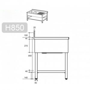 Dodaj na seznamOgledMiza iz nerjavečega jekla dolžine 100 cm z levim umivalnikom in polico (700mm)