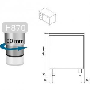 Dodaj na seznamOgledPult iz nerjavečega jekla z globino vrat 600 mm s tremi predali na desni strani (1400 x 600 x 870 mm)