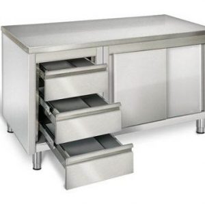 Dodaj na seznamOgledPult iz nerjavečega jekla z globino 600mm s tremi predali na levi strani (1800x600x870mm)